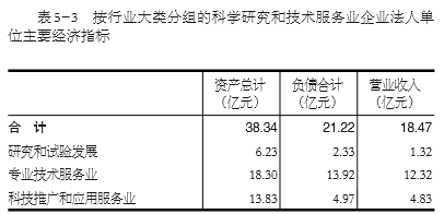 2018年末,科學研究和技術服務業企業法人單位資產總計38.34億元,比2013年末增長22.13%。負債合計21.22億元。全年實現營業收入18.47億元(詳見表5-3)。