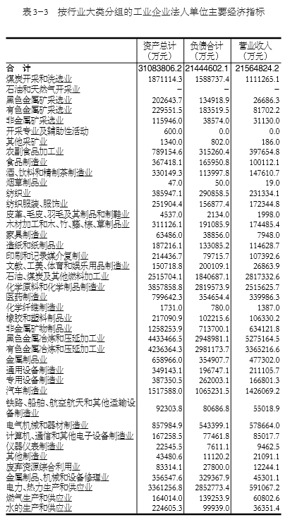 2018年末,工業企業法人單位資產總計3108.38億元,比2013年末增長27.72%。負債合計2144.46億元。全年實現營業收入2156.48億元(詳見表3-3)。