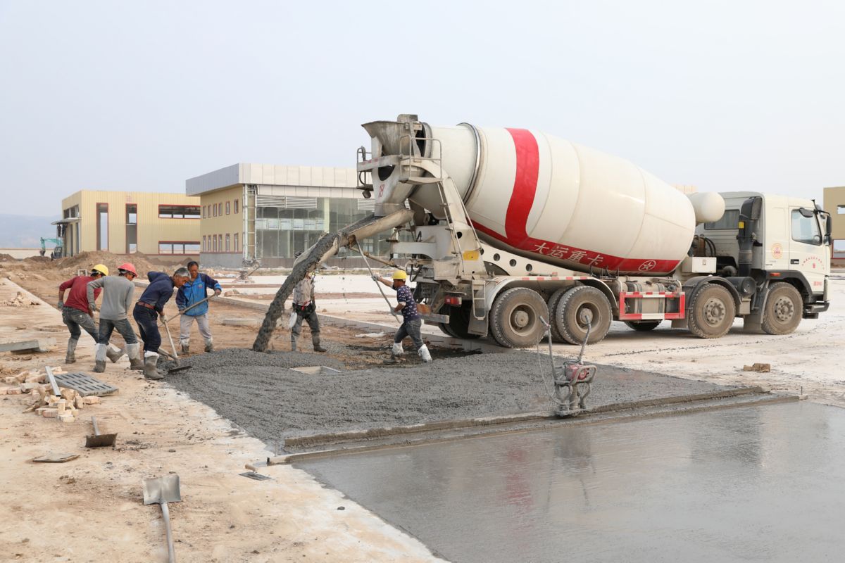 圖為工人在鋪設檢測中心路面。 實習記者 姚普超 攝