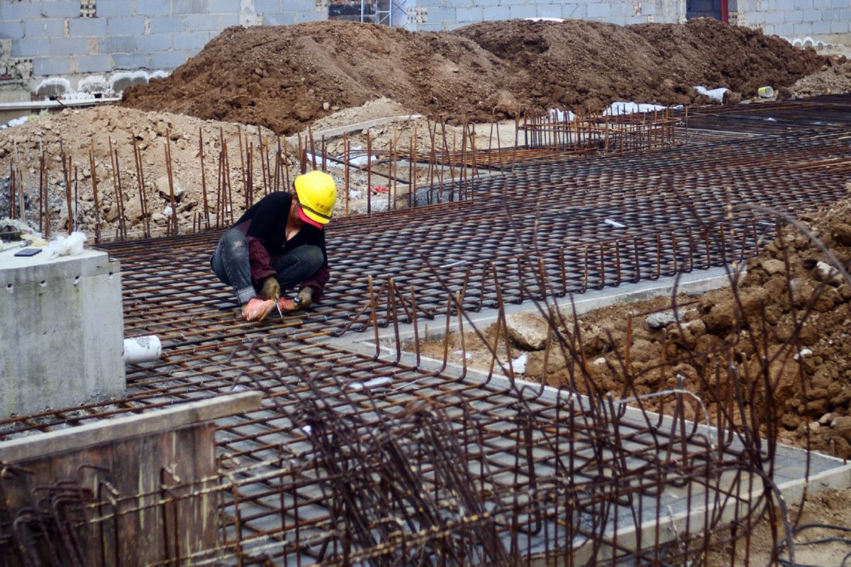 圖為工人在加緊施工。 實習記者 常 奇 攝