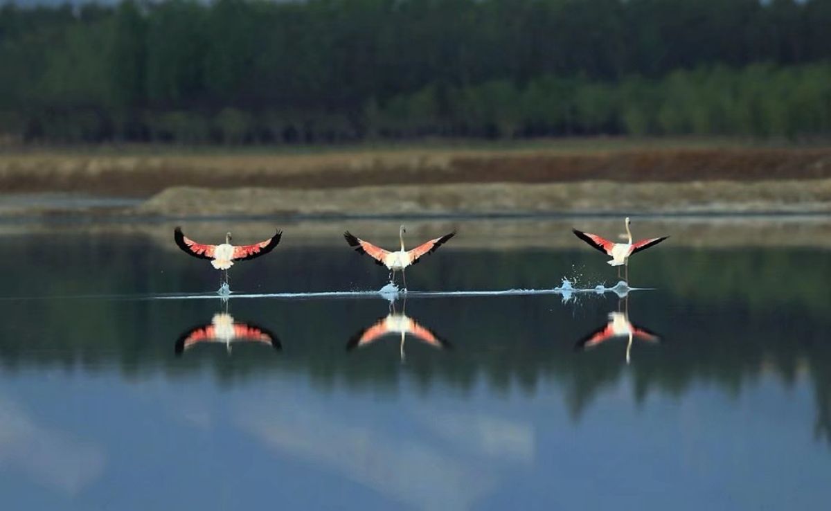 近年來,隨著鹽湖生態(tài)環(huán)境的改善和人們對鳥類保護(hù)意識的增強(qiáng),這里的各種野生鳥類越來越多,包括火烈鳥、黑翅長腳鷸、反嘴鷸、普通燕鸻、鳳頭百靈、長嘴劍鸻、灰頭麥雞等,令人目不暇接。那么,這么多的鳥兒,您認(rèn)識幾個呢? 張明云 王斌 攝影報道