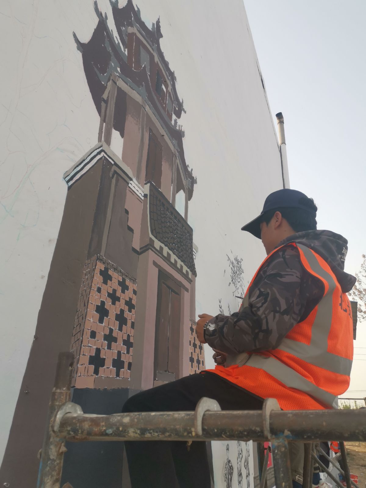“為了更好地體現我們北景的特色,打造真正和諧的人居環境,我們把家鄉的特色進行了個性化設計。”在家延遲開學的貴州黔南民族師范學院大一學生廉澤昆說,“每一幅彩繪都是經過我們深思熟慮、精挑細選后才決定下來的。”