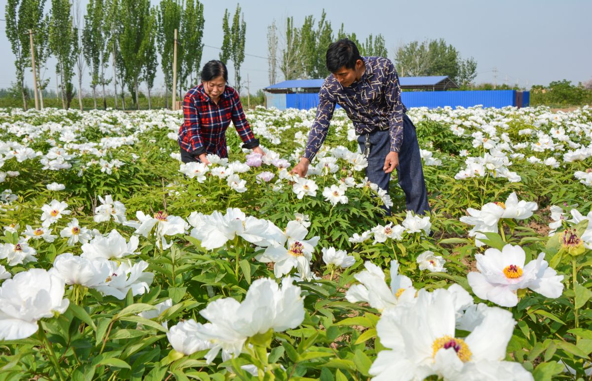 4年前,王安武投資兩萬余元,從山東購買牡丹苗木,將自家15畝耕地全部栽成牡丹。根據今年開花情況,他家牡丹園預計可收入12萬元。 特約攝影 徐應杰 攝