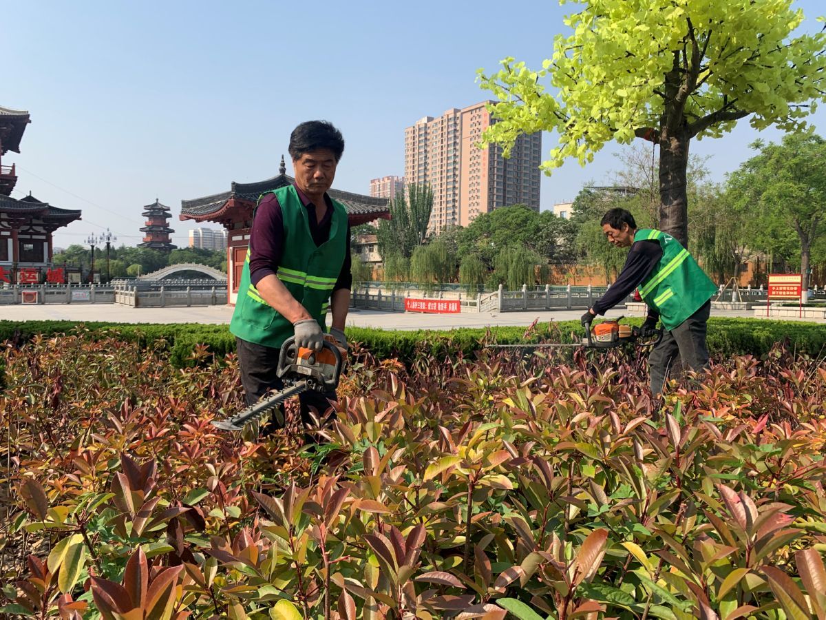 運城晚報訊(記者 廖旌汝)4月27日下午,在市區(qū)人民公園,園林工人正在對該園南門入口處的綠植景觀進行修剪。