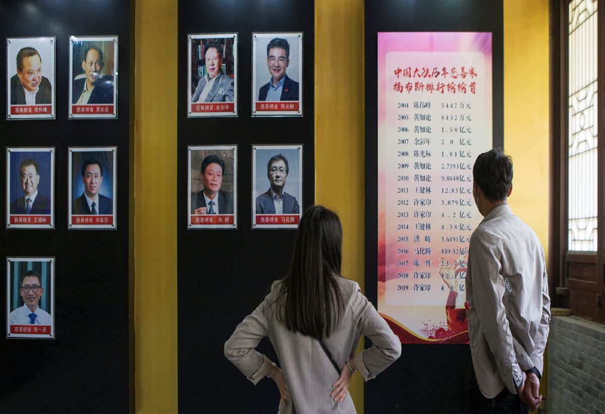 ▲4月29日,游客在萬榮縣李家大院參觀“中國大陸歷年慈善家福布斯排行榜榜首展”。“只要心存一善念,定會浩然天地寬。”以弘揚善舉聞名的李家大院將為他人、為社會無私奉獻的精神與景區融為一體,使游客在游玩的同時也受到了愛國、友善等社會主義核心價值觀教育。 特約攝影 李克榮