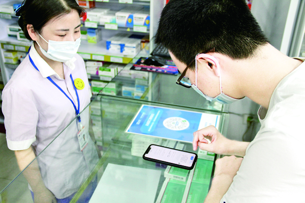 ▲5月14日,一名市民在百匯醫(yī)藥禹西路店利用微信小程序購買處方藥