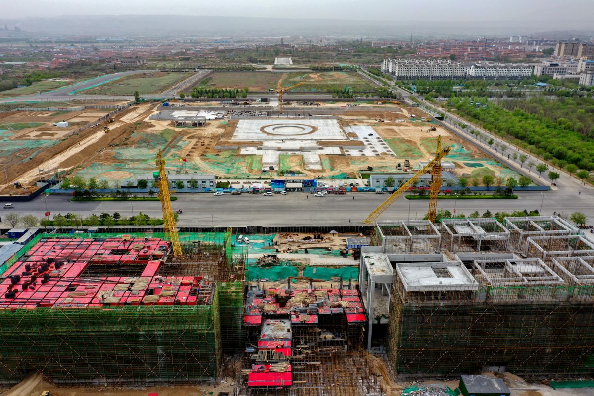 俯瞰建設中的新絳縣新城中心廣場建設項目 特約攝影 宋 磊 攝