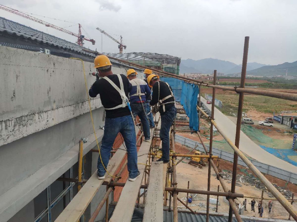 工人們在垣曲縣高級職業中學新校區項目緊張作業 記者 范 娜 攝