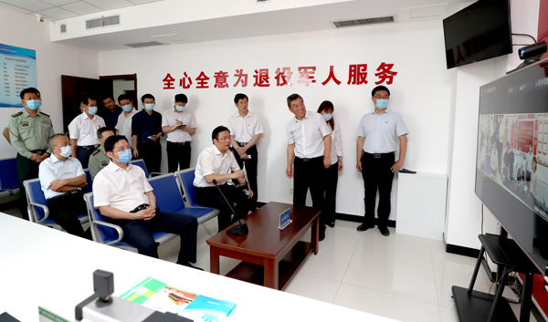 在市退役軍人事務局服務中心,丁小強、儲祥好與前來辦事的退役軍人親切交談,了解他們的安置情況和就業去向,并與萬榮縣皇甫鄉退役軍人服務中心管理人員視頻連線,了解基層工作開展情況。丁小強指出,要強化政策落實,優化安置方式,拓寬就業渠道,加強創業扶持,面對面、心貼心,用心用情做好退役軍人服務工作,真正把服務中心打造成退役軍人的安心、舒心之家。