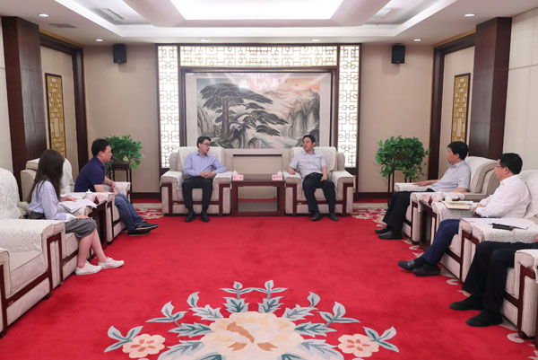 儲祥好與拼多多副總裁陳秋一行座談。記者 閆鑫 攝