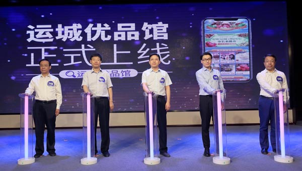 儲祥好、陳秋、王志峰、崔元斌等共同按下啟動柱,“運城優品館”正式上線啟動。記者 閆鑫 攝