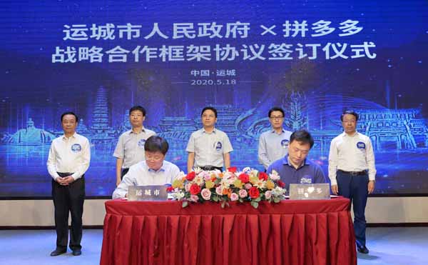 本報訊(記者 張 越)5月18日,市政府與拼多多戰略合作協議簽約暨“運城優品館”上線啟動儀式舉行。這是我市深入貫徹落實習近平總書記視察山西重要講話重要指示、統籌抓好疫情防控和經濟社會發展的具體行動,是我市有效發揮互聯網公司“平臺經濟”規模效應、進一步擴大運城優質產品的知名度和市場占有率、助推全市經濟高質量轉型發展的創新實踐。市長儲祥好,拼多多副總裁陳秋,市委常委、宣傳部部長王志峰,副市長崔元斌等出席活動。
