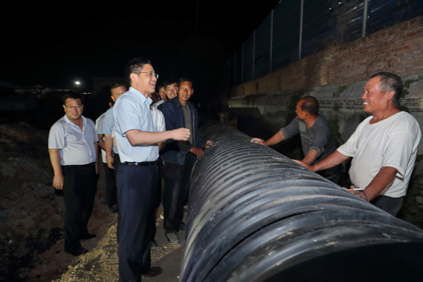 城市道路積水問題是儲祥好一直牽掛的事情。晚上10點鐘,他前往運城東高速口,實地察看應急溢水管道建設進展。這是10天內儲祥好第三次來到這里,只見施工現場燈火通明、機聲轟鳴,工人們正在緊張施工,運城經濟技術開發區負責人加緊協調推動工程建設。得知全長706米的管道僅剩60米就全線貫通,工程將于5月23日提前完工后,儲祥好十分欣慰。他說:“限期解決城區道路積水問題,是市政府對百姓的承諾,要說話算數、說到做到。連日來,大家加班加點、連續作戰,才有今天工程的順利推進,你們辛苦了?!彼磸投谝獣r刻繃緊安全生產這根弦,夜間施工尤其要注意安全,不能有任何閃失,并要求工程項目負責人,科學合理排班,做好施工人員的后勤保障。