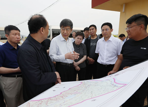張瑞鵬一行在涑水河入黃口水生態修復工程調研 記者 閆鑫 攝