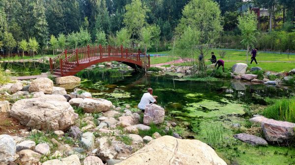在王茅鎮西王茅村,村邊一片面積不大的楊樹林如今成了市民周末休閑的好去處。當地一個村民承包了這片樹林,提供戶外燒烤服務,一天收益最多時達到5000元。邊上不遠處就是剛完工沒多久的集水源地保護和休閑娛樂于一體的五龍泉水源地及集中供水工程,草坪、小橋、流水,幾個游人在水邊嬉戲,和小游園沒有什么兩樣。