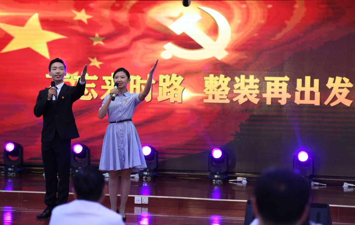 6月30日,稷山縣稷峰鎮黨委代表隊在參加“誦讀經典、踐行使命”誦讀比賽。 栗盧建 楊 盼 攝