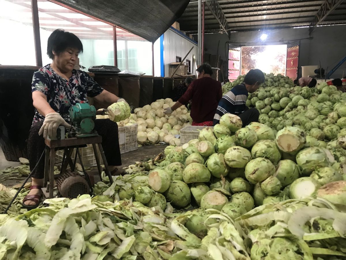 6月22日,在鹽湖區(qū)泓芝驛鎮(zhèn)寨頭村的山西恒老久農(nóng)副產(chǎn)品加工有限公司,66歲的景鳳琴和幾名村民一起加工苤藍(lán),準(zhǔn)備腌制醬菜。