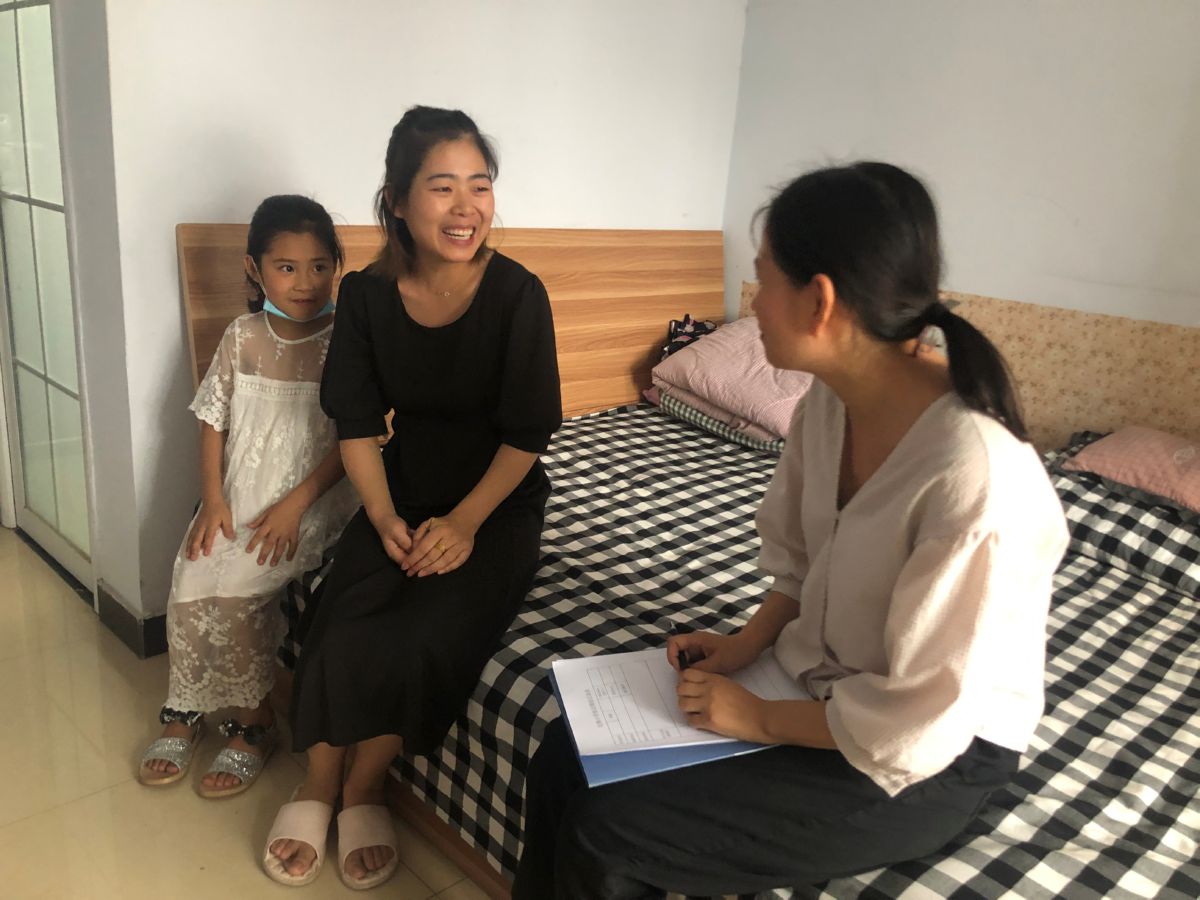 ▲楊倩(右一)在家訪 王露 攝