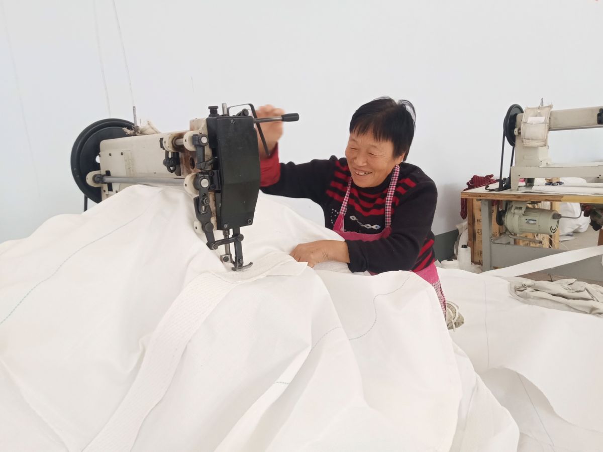 ▲平陸縣龍源村村民在龍源縫紉加工車間工作 陶登肖 攝