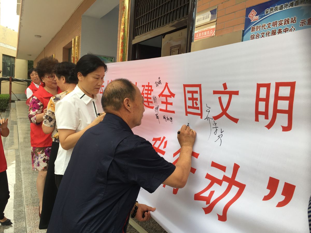 活動現(xiàn)場,社區(qū)工作人員向參加活動的人員宣讀了《創(chuàng)建全國文明城市倡議書》,號召大家?guī)ь^踐行社會主義核心價(jià)值觀,做文明人、辦文明事,以實(shí)際行動影響和帶動周圍人自覺養(yǎng)成遵守社會公德、維護(hù)公共秩序、塑造文明形象的良好習(xí)慣。倡議書宣讀完后,大家在“運(yùn)城市創(chuàng)建全國文明城市簽名活動”條幅上簽名。