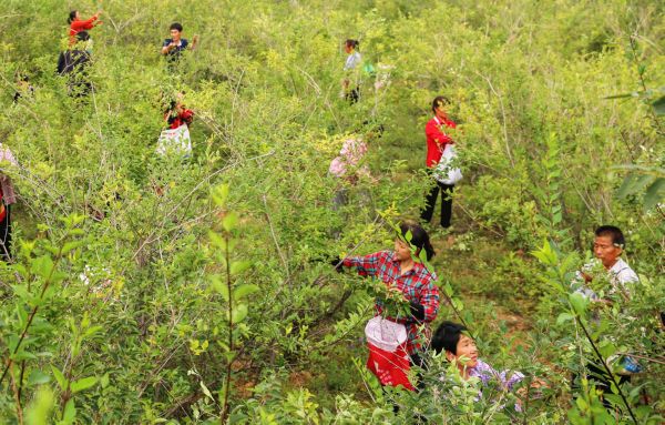 馬蹄古垛村地理氣候特點適宜連翹生長。目前,該村已建起700畝連翹種植基地,吸納100多名村民和貧困戶加入合作社。今年連翹市場價格堅挺,該合作社畝收益5000元左右。 特約攝影 張秀峰 攝