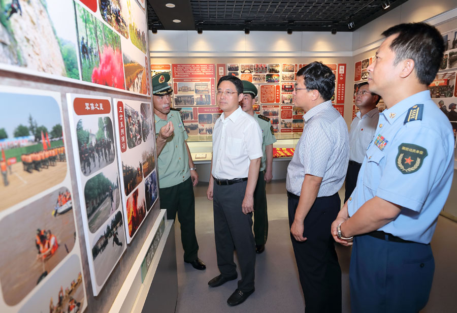 儲祥好、周躍武、杜自立、郭尚禮、劉國義和運城軍分區(qū)司令員毛輝一行來到武警運城支隊,參觀支隊史館,觀摩作戰(zhàn)指揮演示。儲祥好勉勵戰(zhàn)士們牢記肩負使命,當好忠誠衛(wèi)士。他說,長期以來,全市武警官兵深入貫徹習近平強軍思想,聚焦練兵備戰(zhàn),在維護社會穩(wěn)定、處理突發(fā)事件、應急搶險救災等方面作出了突出貢獻,市委、市政府和全市人民感謝大家。希望廣大官兵進一步發(fā)揚英勇頑強的戰(zhàn)斗精神,弘揚優(yōu)良傳統(tǒng),練就過硬本領,以建設運城、保障運城為己任,再立新功、再創(chuàng)佳績。運城各級黨委、政府將一如既往當好堅強后盾,不斷鞏固發(fā)展軍政軍民團結的大好局面。