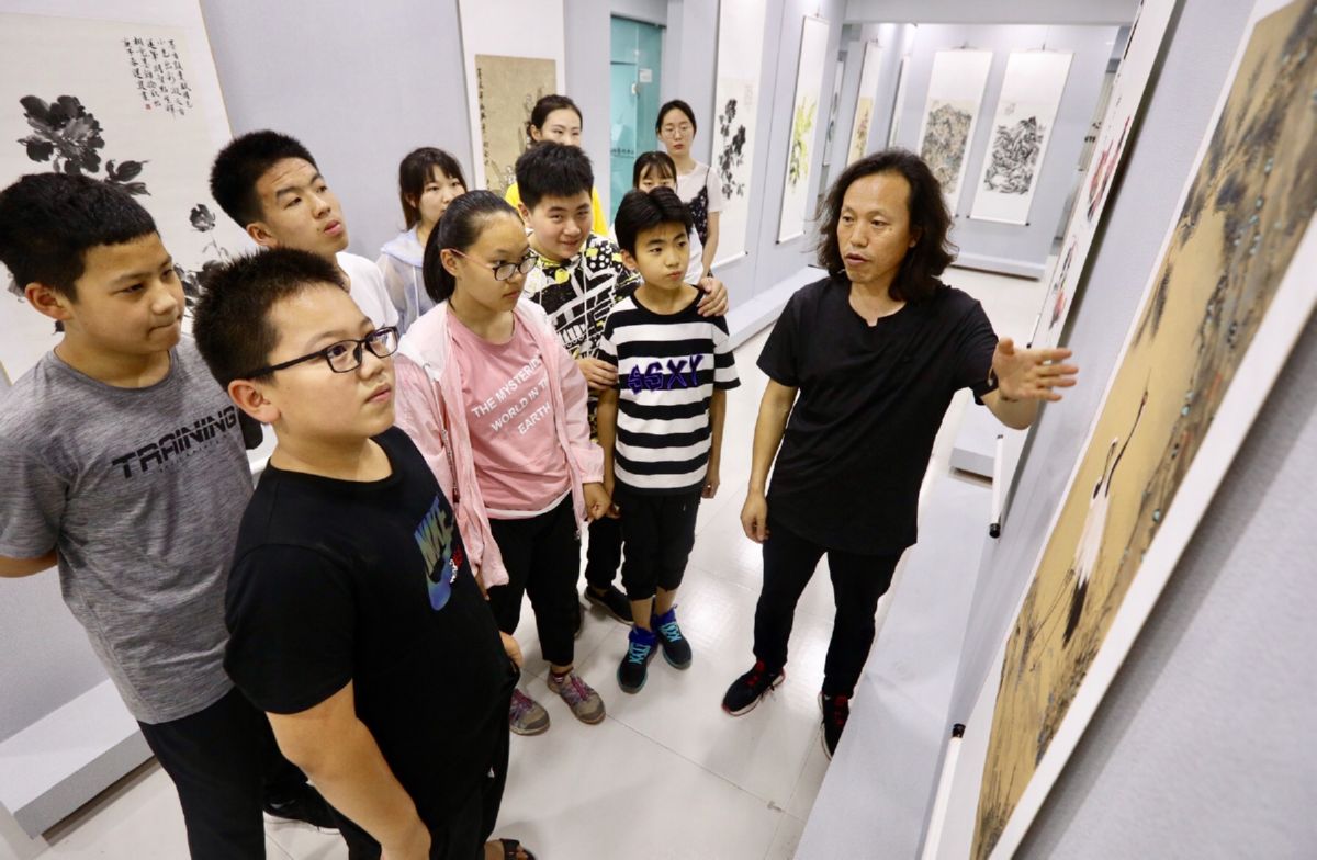 ?7月25日,尚行文化藝術中心的師生在觀看國畫展覽。