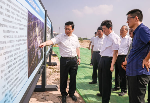 丁小強首先來到大禹街與人民路交叉口處,查看大禹街二期工程和規劃館建設進展情況,聽取新區市政工程謀劃情況匯報。他指出,要統一規劃、分期實施,統籌抓好路面、地下管網和沿路綠化工作,形成高標準的完善路網,為北部創新生態新區的發展奠定良好基礎。