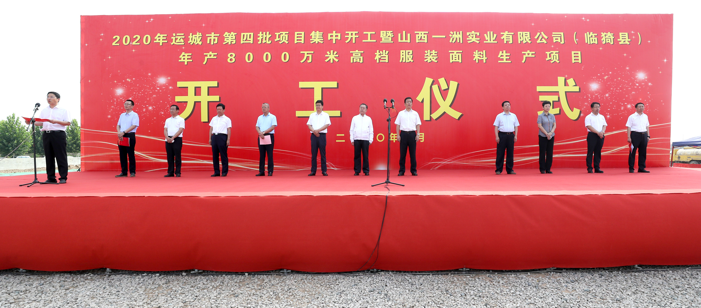 本報訊(記者 王文軍)8月4日,2020年全市第四批重點項目集中開工暨臨猗縣山西一洲實業有限公司年產8000萬米高檔服裝面料生產項目開工儀式在臨猗縣舉行。市委書記丁小強宣布開工。市委副書記、市長儲祥好主持開工儀式。市領導安雅文、張潤喜等出席。市委常委、常務副市長陳杰介紹全市第四批集中開工重點項目情況。當天,全市13個縣(市、區)和運城經濟技術開發區共集中開工項目157個,總投資134.3億元。