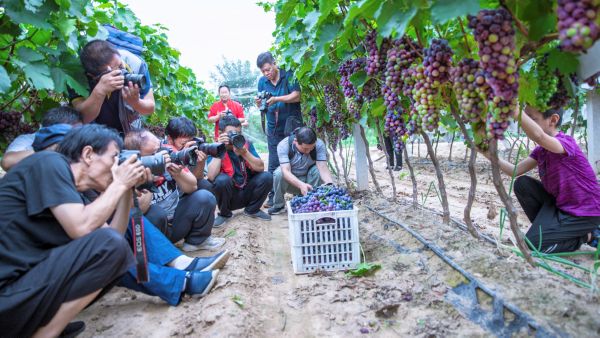 當(dāng)天,大家用手中的相機(jī)聚焦葡萄的田間管理、采摘等精彩畫(huà)面。 特約攝影 楊建峰