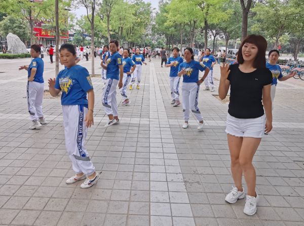 ▲8月2日,鹽湖區老年體協天逸公園輔導站花樣舞蹈隊,在條山文化苑練習舞蹈,迎接8月8日在市區南風廣場舉行的“全民健身日”活動。