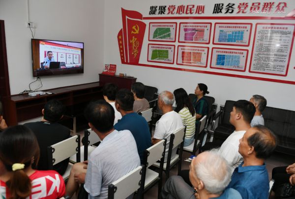 8月11日,稷山縣社區(qū)服務(wù)中心大佛社區(qū)黨員干部通過電視直播觀看《習(xí)近平談治國理政》第三卷專題講座。