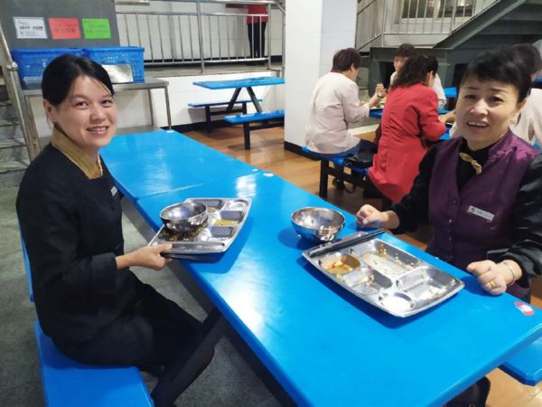▲在市區恒澤大酒店員工餐廳,員工們自覺踐行“光盤行動”。 陶登肖 攝