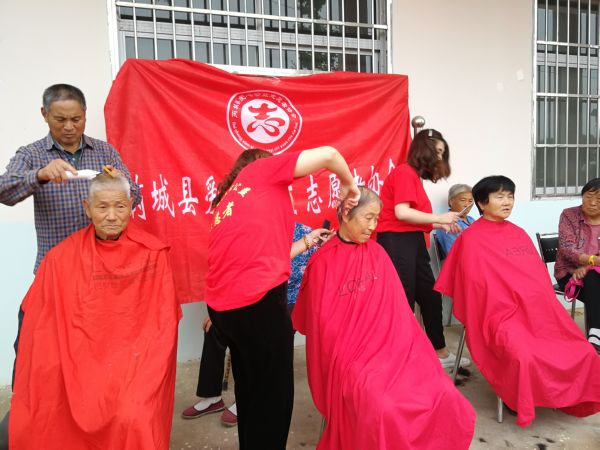 當日,大王村村委會大院內充滿了歡聲笑語。該協會志愿者為老人們理發、義診、剪指甲,并發放黃手環,陪老人們聊天。