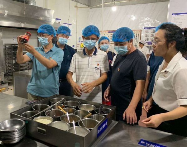 ▲近日,市市場監(jiān)督管理局工作人員在鴻圓園源餐飲晉粵軒飯店后廚進行檢查,確保群眾“舌尖上的安全”。