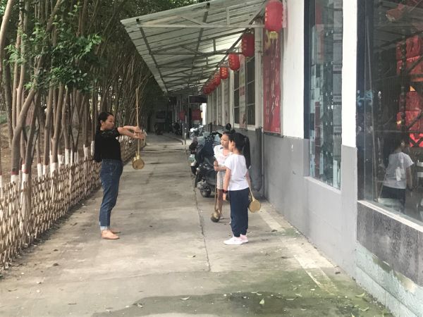 8月18日,在市區(qū)一街心公園,小朋友跟著茶藝老師學(xué)習長嘴壺茶藝。