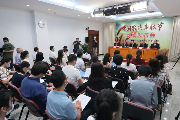 運(yùn)城日?qǐng)?bào)訊 今年9月22日,即農(nóng)歷秋分,我國(guó)將迎來(lái)第三個(gè)中國(guó)農(nóng)民豐收節(jié)。8月20日下午,農(nóng)業(yè)農(nóng)村部新聞辦公室舉行新聞發(fā)布會(huì),介紹2020年中國(guó)農(nóng)民豐收節(jié)有關(guān)情況,并回答記者提問(wèn)。農(nóng)業(yè)農(nóng)村部副部長(zhǎng)于康震,山西省副省長(zhǎng)王成,農(nóng)業(yè)農(nóng)村部總農(nóng)藝師、新聞發(fā)言人、辦公廳主任廣德福,農(nóng)業(yè)農(nóng)村部市場(chǎng)與信息化司司長(zhǎng)唐珂,山西省運(yùn)城市市長(zhǎng)儲(chǔ)祥好,運(yùn)城市委常委、宣傳部部長(zhǎng)王志峰等出席新聞發(fā)布會(huì)。