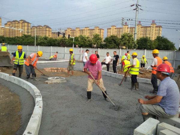 ▲施工人員加快實施條山街與中銀路交叉口渠化島建設(shè) 祁克寧 攝
