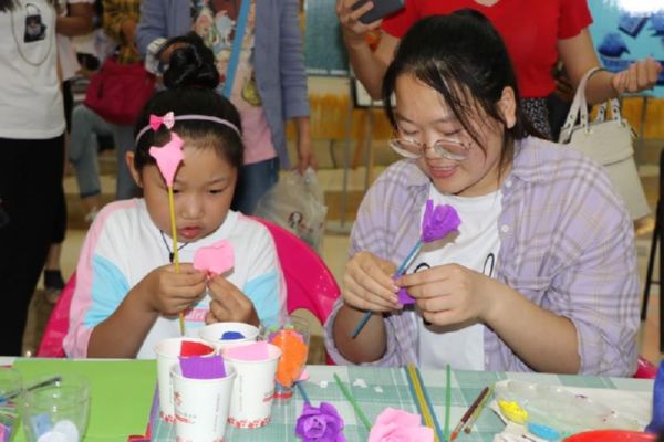 ▲孩子們將廢品變成藝術(shù)品 馮楊婕 攝