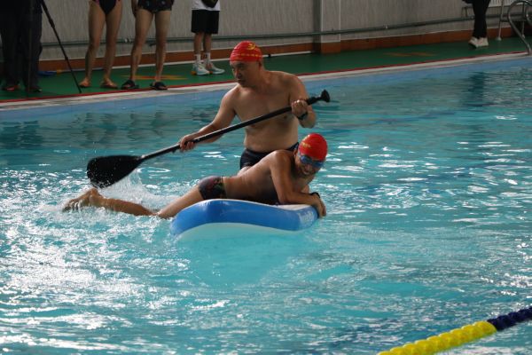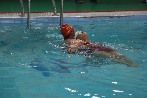 ▲救援隊員演示如何應急救援“溺水者” 馮楊婕 攝