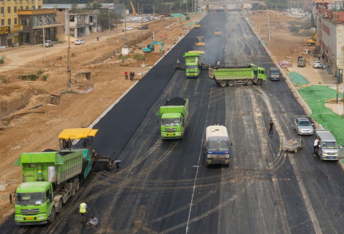 ▲解放北路攤鋪瀝青現場