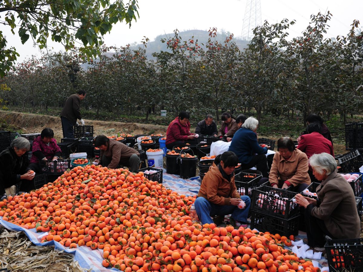 ▲郭家莊鎮蓮坪村村民給柿子裝筐