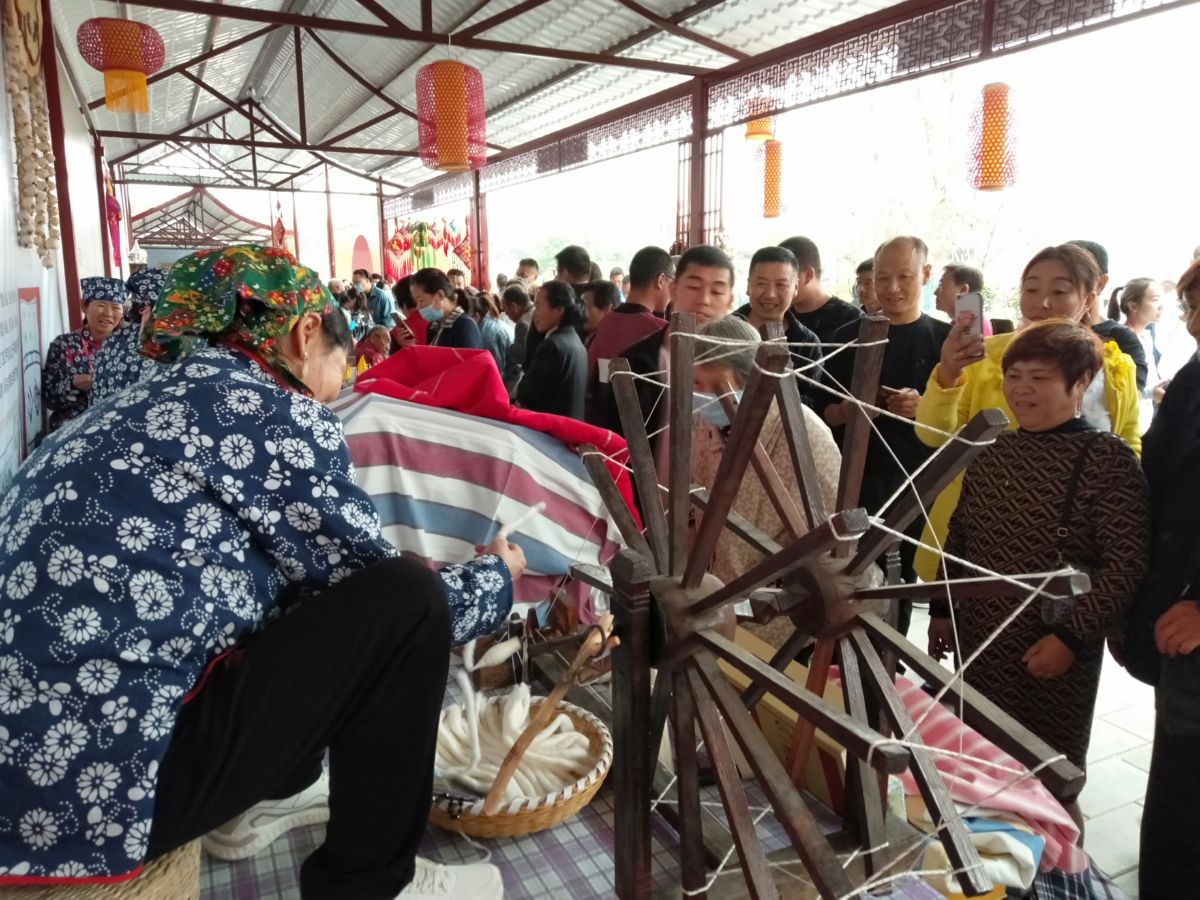 惠暢土布制作技藝展示,吸引了參觀群眾駐足拍照。