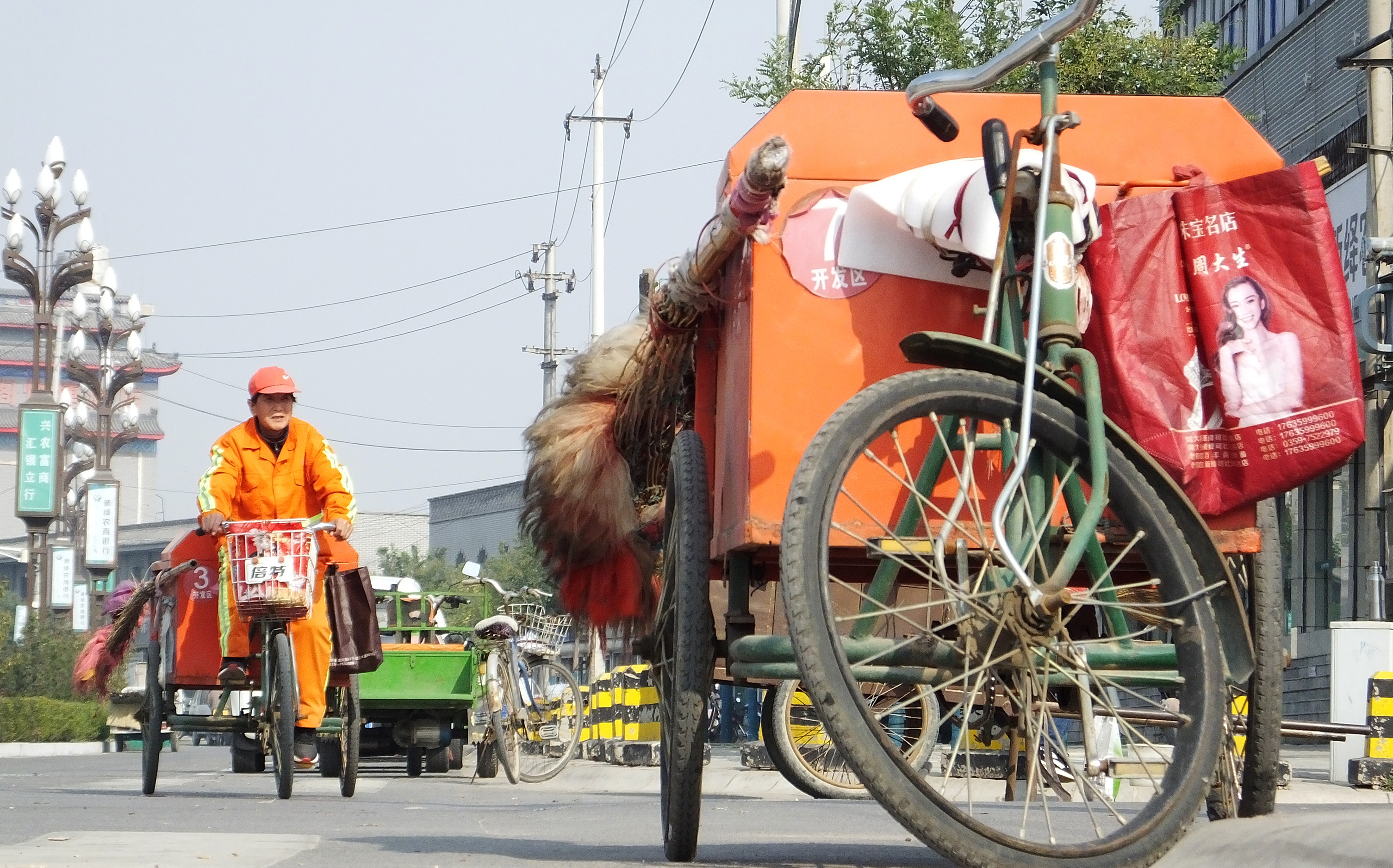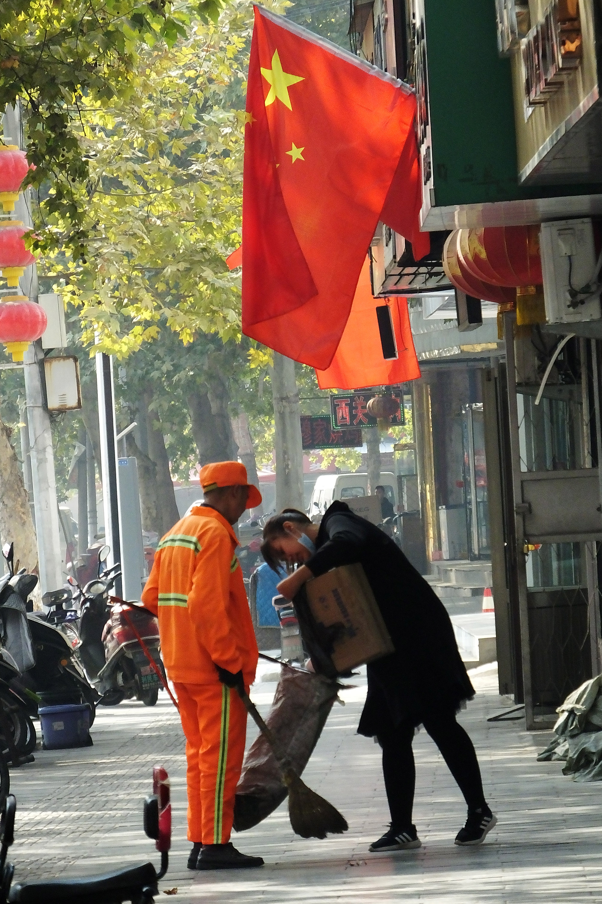 10?月?26?日,在新絳縣龍興街,一名環(huán)衛(wèi)工人清掃垃圾。