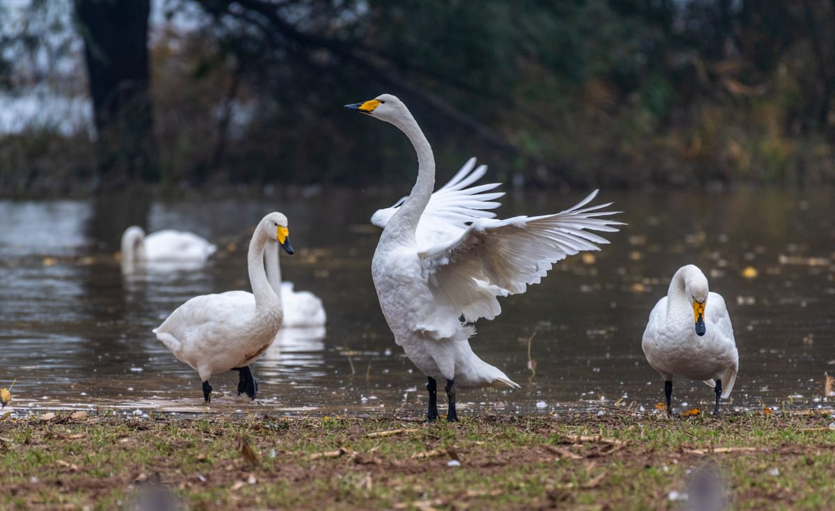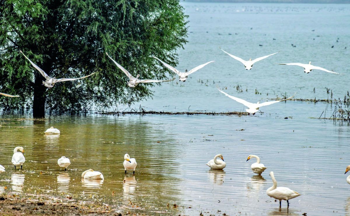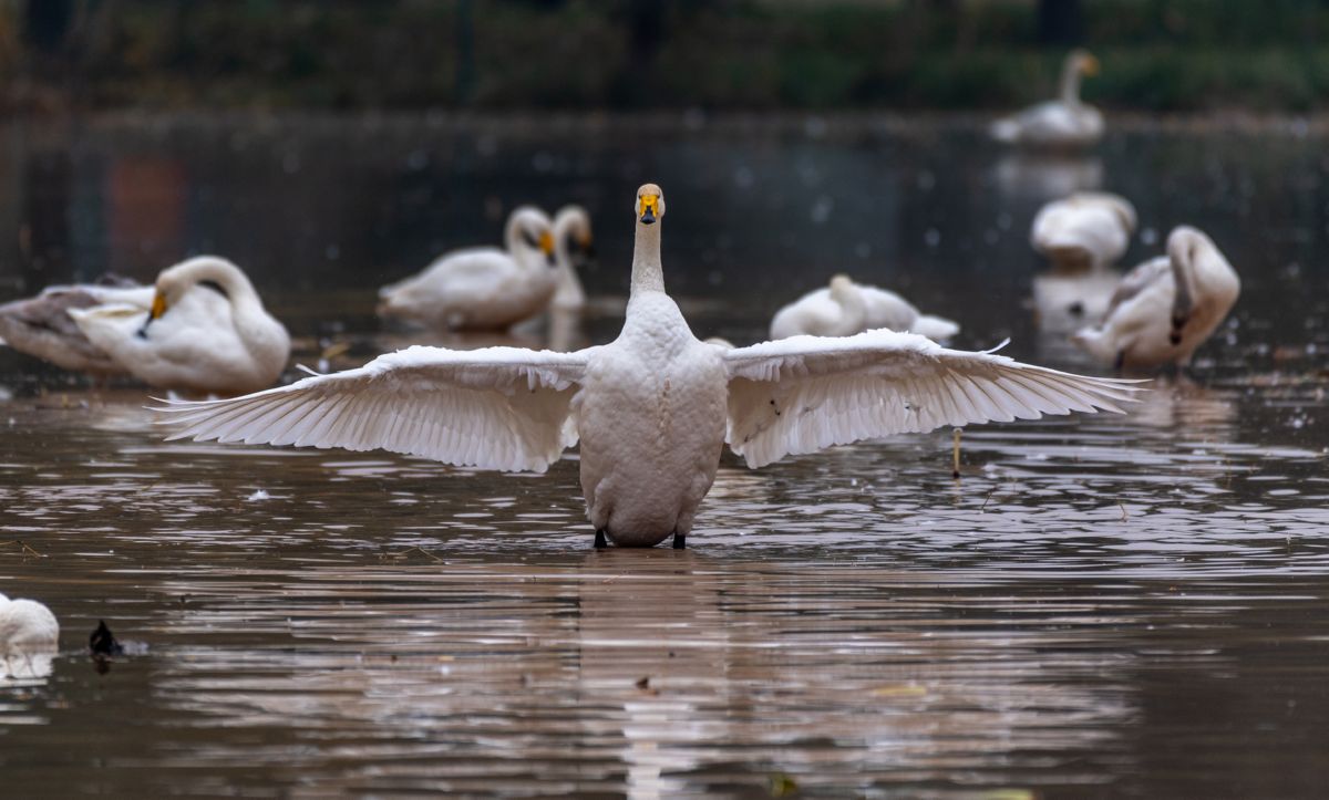 深秋時節,成群的白天鵝陸續飛臨平陸黃河濕地,準備在這里過冬。它們嬉戲、覓食,將黃河濕地變成了美麗的“天鵝湖”,為黃河濕地平添了幾許靈動。