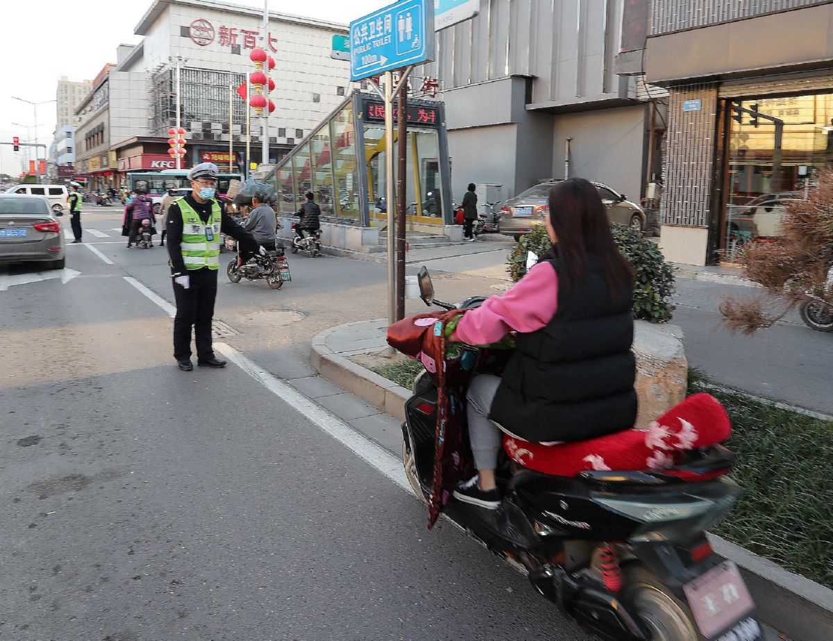 運城晚報訊 11月6日,鹽湖交警大隊六中隊民警在市區百大崗,整治電動自行車不按規定行駛的交通違法行為。