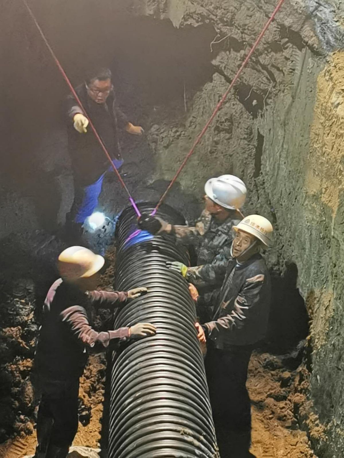 經過工作人員24小時的連續施工,截至目前,塌陷路段的排水管道已經搶修完工,道路基礎已基本恢復,目前正進行養護,預計11月12日路面恢復通行。