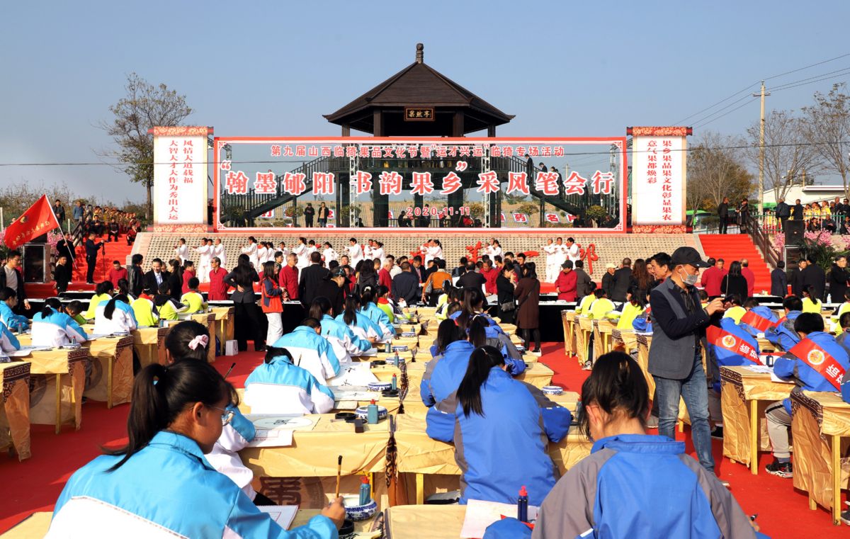 開幕式當天,130余種水果琳瑯滿目、香氣撲鼻,各類果樹苗木和農機器具擺滿廣場,168家果業合作社集中參展、互曬產品……來自五湖四海的果商、嘉賓及游客齊聚晉商源頭猗頓故里,以果為媒、以節會友,共襄盛舉、共謀發展。大家深入臨猗縣國家蘋果產業體系運城綜合試驗站、臨猗縣智慧果業技術集成中心、國家現代蘋果產業(東卓)示范基地、北辛鄉大嶷山現代蘋果示范區、廟上鄉農文旅融合設施鮮棗示范基地等5個觀摩點,采摘品嘗個大色鮮、汁多味甜的臨猗蘋果,欣賞臨猗縣書協舉辦的“翰墨臨猗·書韻果鄉”采風筆會活動中100余名臨猗學子現場揮毫潑墨的盛景,感受臨猗悠久厚重的文化積淀,全方位領略果業大縣、文化大縣的獨特魅力。