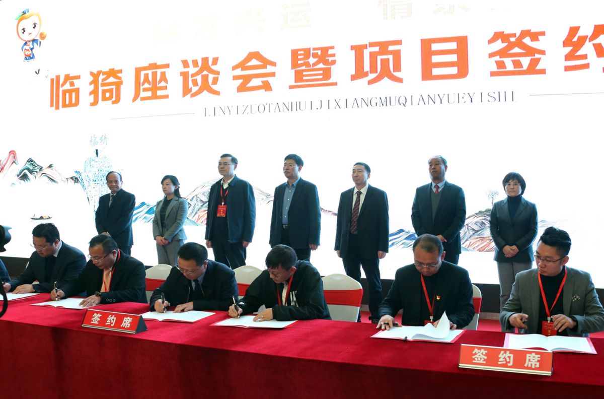項目簽約儀式上,臨猗縣政府共簽約8個項目,總投資33.98億元:與北京天潤新能投資有限公司簽署投資20億元的臨猗縣光伏開發項目,與廈門中卡科技股份有限公司簽署投資1.28億元的數字城市智慧停車運營管理項目,與河南焦作交運集團解放商用汽車服務有限公司簽署投資1.8億元的一站式商用車(卡車)綜合服務體臨猗產業園項目,與廣州樂禾產業園管理有限公司簽署投資3億元的樂禾食品科技產業園項目,與天津華基耀業實業集團有限公司簽署投資5億元的臨猗食品加工園區項目,與上海億弋新材料科技有限公司簽署投資0.6億元的新型相紙生產線建設項目,與河北省安平縣融創交通防護設施工程有限公司簽署投資1.5億元的附著式智能升降腳手架項目,與河南三門峽星源建筑材料有限公司簽署投資0.8億元的年產80萬噸新型環保干混砂漿項目。