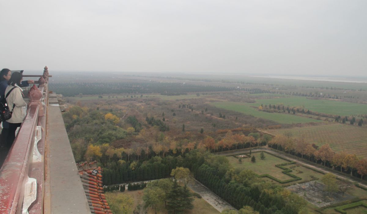 ▲初冬時節,不少游客登臨永濟鸛雀樓向遠方眺望,黃葉、綠植、黃河相映生輝,氣勢壯闊,成為一道動人的風景。